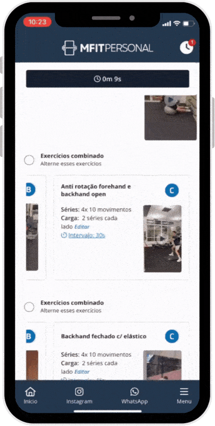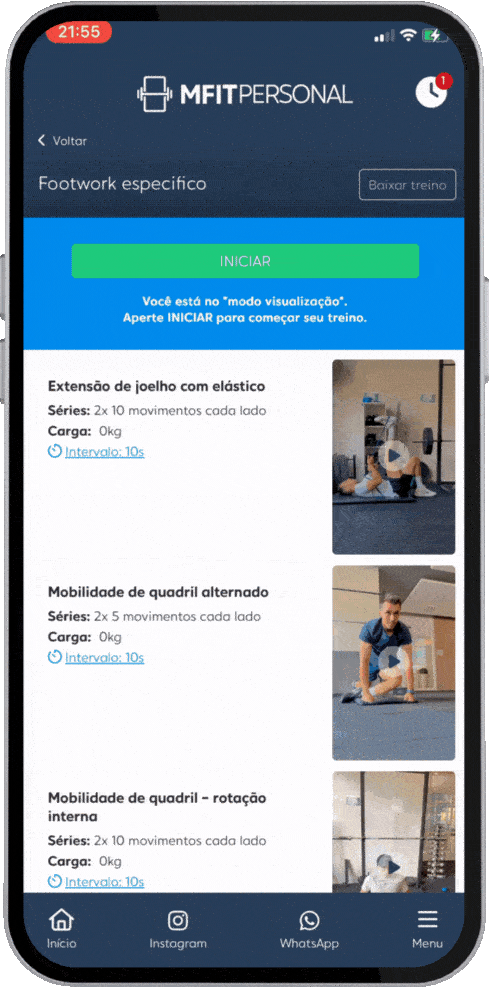 Todo os treinos serão acessados pelo aplicativo MFIT-PERSONAL.